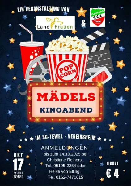 Am Fr., 17.10.2025 ab 19:30 Uhr veranstalten die Landfrauen gemeinsam mit dem SC Tewel einen Kinoabend für Frauen im Teweler Vereinsheim. Der…