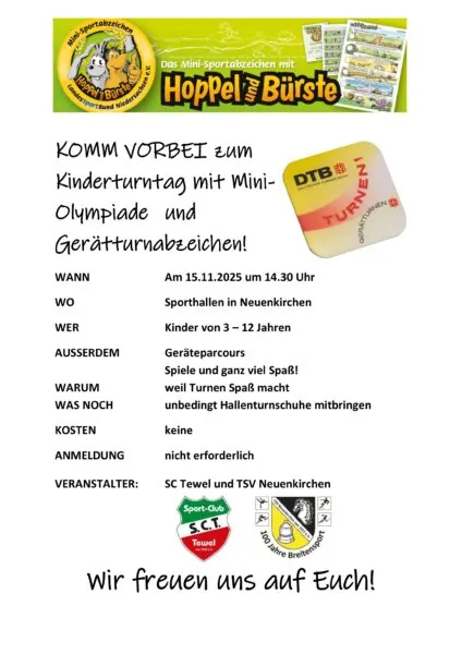 Am Samstag, den 15. November 2025 ab 14:30 Uhr lädt der SC Tewel gemeinsam mit dem TSV Neuenkirchen alle Kinder zwischen 3-12…