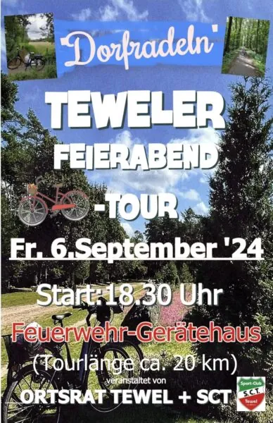 Die Ortschaft Tewel lädt Einwohner und Gäste zu einer Feierabend-Radtour am Freitag, 6.September ein. Start dieser knapp 20 km langen Rundreise ist…