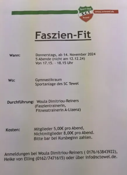Ein weiteres Kursangebot startet im Winter in unserem Gymnastikraum: Die Fitnesstrainerin mit A-Lizenz Woula Dimitriou-Reiners bietet an fünf Abenden jeweils donnerstags von…
